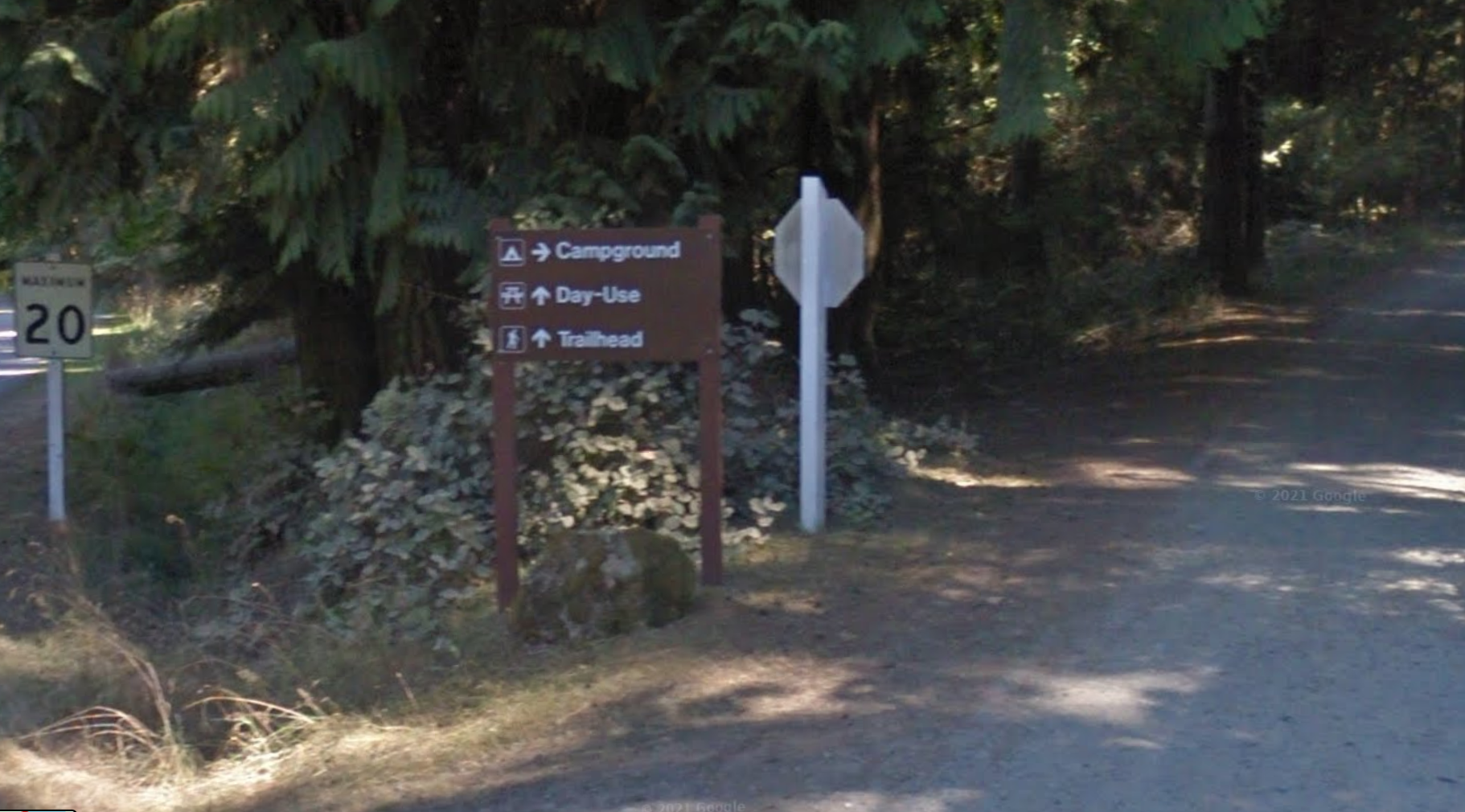 - When you get to the park entrance there will be a fork in the road. GO RIGHT to the area designated as “Campground” (see picture below).